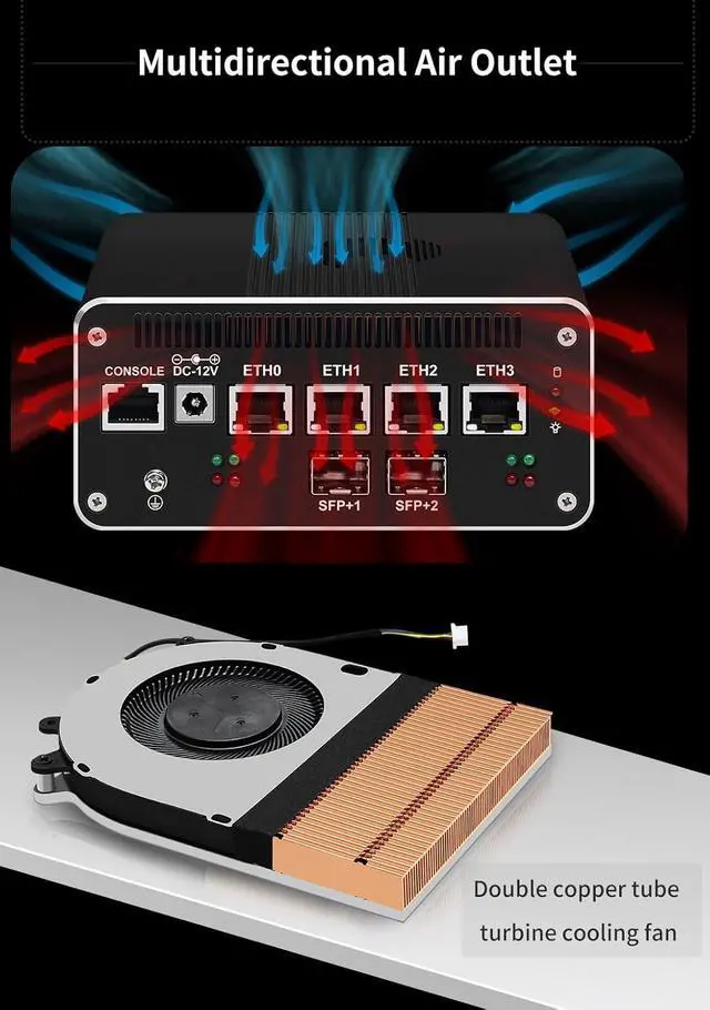 2*SFP 10GbE Ports&4*2.5GbE PortsThis firewall appliance comes with 2 Intel 82599ES 10gbe network card(4xSignal)and 4*Intel i226 2.5g network card ,which Can provide you with ultra-fast Internet experience.