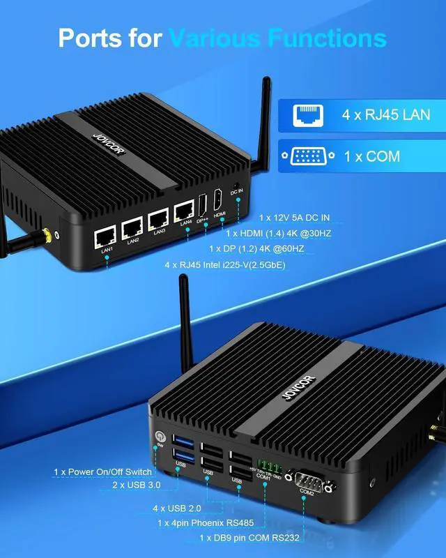JOVCOR Mini PC JOVCOR Fanless Mini PC Fanless Industrial PC