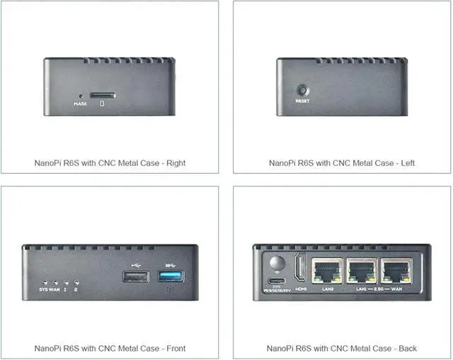 FriendlyElec NanoPi R6S Mini Computer, RK3588S Cortex-A76, 4/8GB DDR4, 64GB eMMC, 2.5G Ethernet, with CNC Metal Housing (8+64GB Ram Metal Kit)
