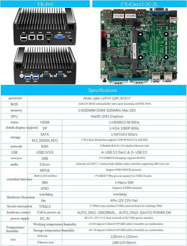 Dual 1GbE LAN: Mini Router PC with 2*Realtek RTL8111H network card chip full UDE 1000M with filter connector.Soft Router can monitor network data, improve network security, powerful and widely used.Support WIFI/4G PCIE protocol;1*Mini SIM compatible with Nano SIM,Supports 8 GPIO channel;Built in I/O interface,1 * USB2.0 1 * 4Pin pin can expand two USB 2.0 ports