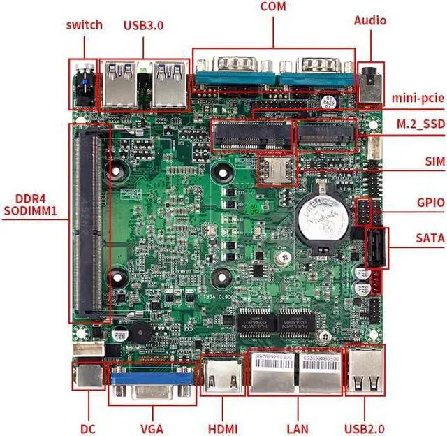 Rich interfaces: 2 x1000M Realtek LAN,4 xUSB3.0, 2 xUSB2.0, HDMI,VGA,AUDIO,2 RS232 COM(changing the jump cap to support RS485) supports data storage and system boot.