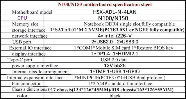 Powerful N150 Processor: N150 Processor, 4 Cores 4 Threads, 6M Cache, Max Turbo Frequency 3.6 GHz, TDP 6W. Compatible with OPNsense, Linux, ESXI, OpenWrt and other systems. Press "Delete" key to enter BIOS setup, supports Auto Power On, Wake On Lake, GPIO, PXE