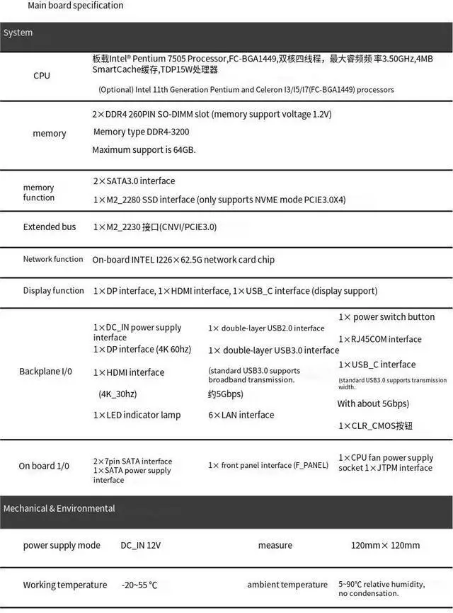 UHD Graphics & Dual Display: 7505 processor integrated UHD Graphics, HD and DP dual display interfaces support 4K@60Hz.
