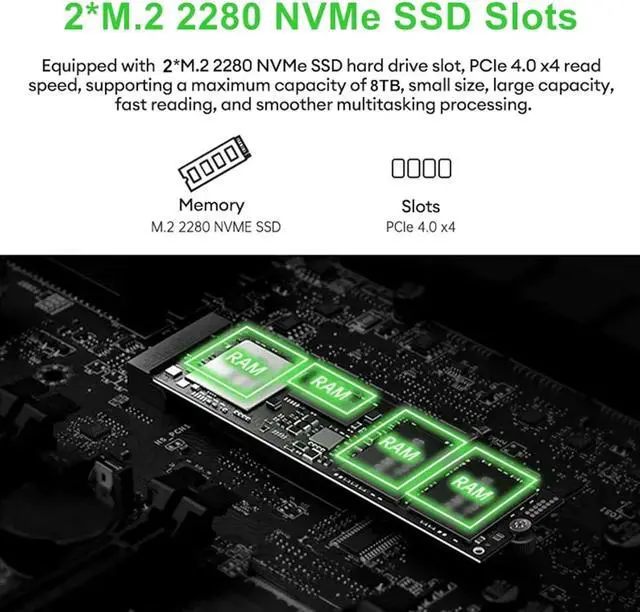 Dimensionpalm size, 132mm(L)x132mm(W)x48mm(H)CPURyzenGPURadeon refer to different CPURam2 x SO-DIMM DDR5 slots, 5600MHz(Ryzen 9 8945HS/7940HS, Ryzen 7 8845HS/8745HS/7840HS, Ryzen 5 7640HS), 4800MHz(Ryzen 9 6900HX, Ryzen 7 6800H)SSDSupport 2xM.2 2280 NVME/PCIE4.0x4 (compatible with PCIE3.0)WiFi802.11 AX WiFi6 with Bluethooth5.2RJ452 x 2.5G i226-VFront I/O2 x USB 3.2, 1 x OCuLink(PCIE4.0x4), 1 x Type-C USB4.0(40Gbps), 1 x Audio, 1 x SwitchRear I/O2 x USB 2.0, 1 x HDMI2.1, 1 x DP2.1, 2 x 2.5G RJ45 LAN, 1 x DC-INOSActivated Win 11 Pro pre-installed(except no ram no storage bundle) CHUYANG MINI PC Dual-screen notebook Mini computer case Mini industrial PC NAS motherboard Product after-sales feedback questions Product problems Product Parameters