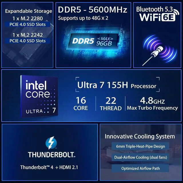 • FUTURE-PROOF EXPANSION \u2013 Dual DDR5 slots (96GB max) and dual PCIe 4.0 M.2 slots (2280+2242) enable effortless upgrades; tool-free chassis design simplifies maintenance.