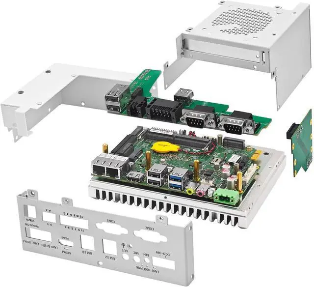 Package Includes:1xMini PC, 1xEar hooks, 1xPower adapter, 1x1.5M standard three-prong power cord (T-shaped), 1x1.5m yellow-green grounding wire, M3 for industrial PC and M6 for user cabinet, round loop lug.