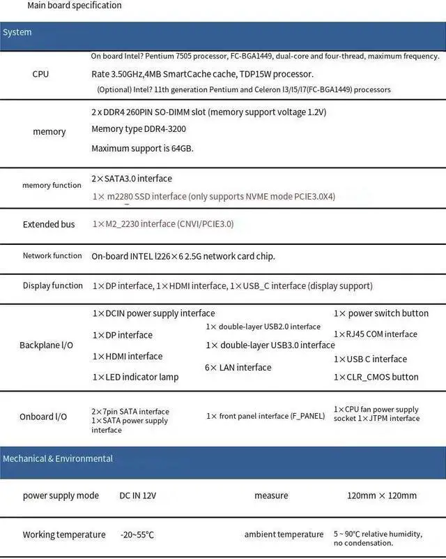 -2xDDR4 SODIMM non-ecc ram slots, support max 32GB*2 3200MHz.