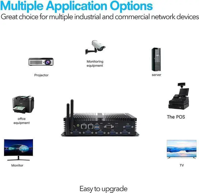 I/O connections: 2* USB 3.0 + 2* USB2.0 + HDMI + VGA + 2x RJ45 Gigabit Lan + 6* RS232 COM Ports.