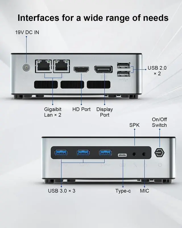 1 * Mini desktop computer; 1 * 19V Power adapter; 1 * HD cable (as gift).