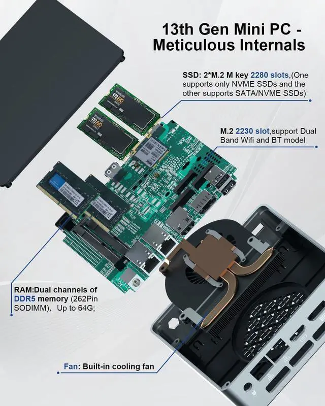 Wifi: M.2 2230 AC Wifi Slot,Support Dual Band Wifi 6 and BT 5.2.