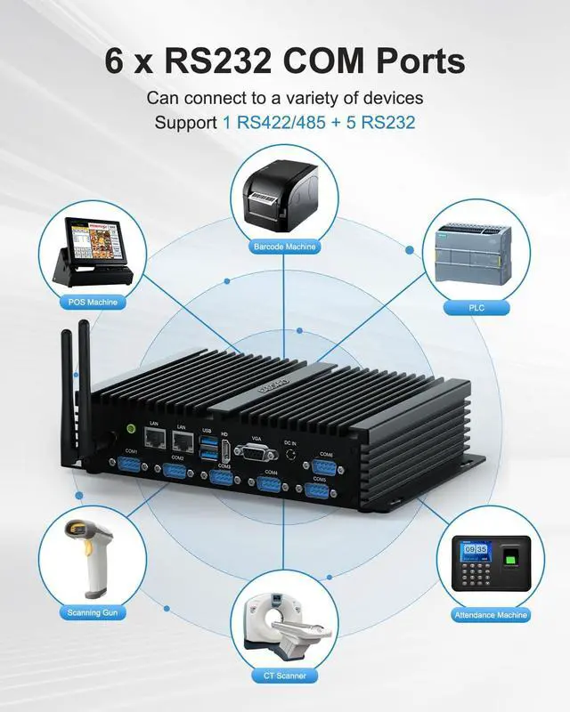 BASOARO Fanless PC Mini Industrial Computer Specifications HD VGA Dual Display 6 RS232 COM