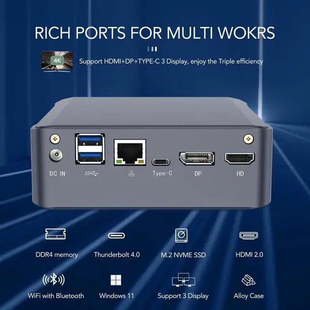• 11th i3 Mini PC Windows11With 11th Generation Dual Core i3 1115G4 Processor (2 Cores 4 Threads, 6M Cache),3.0GHz up to 4.1GHz,UHD Graphics; Preinstalled Windows 11 with English.(If need other system,pls kindly leave us a message)