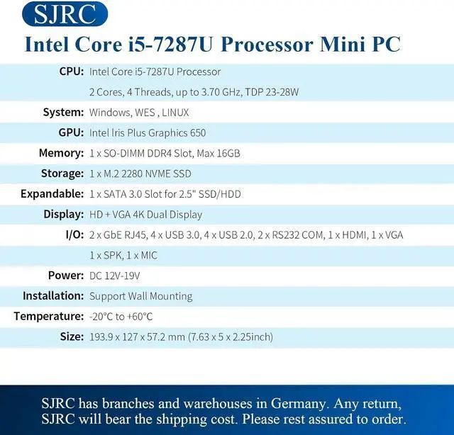 Industrial Mini PC Fanless with In-tel Core i5-7287U