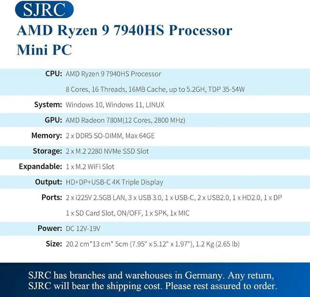 SJRC Micro PC: Dual 2.5GbE LAN, 4K Triple Display, DDR5
