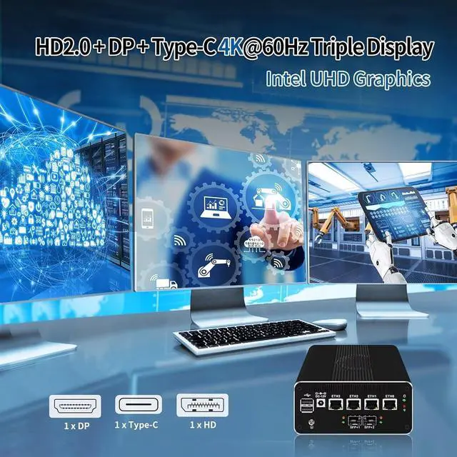 Display: 1 x HD + 1 x DP + 1 x Type-C 4K@60HZ 3 display.