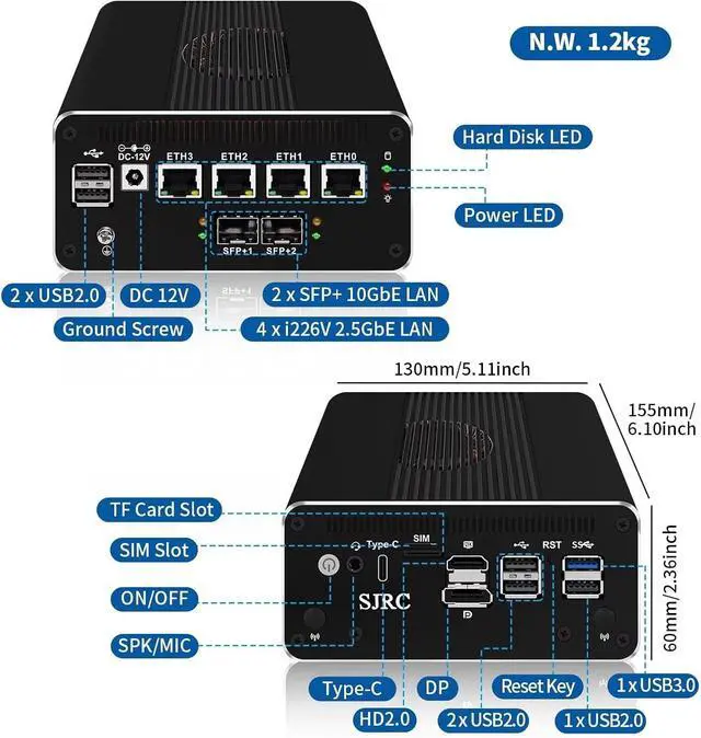SJRC Dual 10Gb SFP+ 12th Gen Alder Lake N200 Firewall Mini PC
