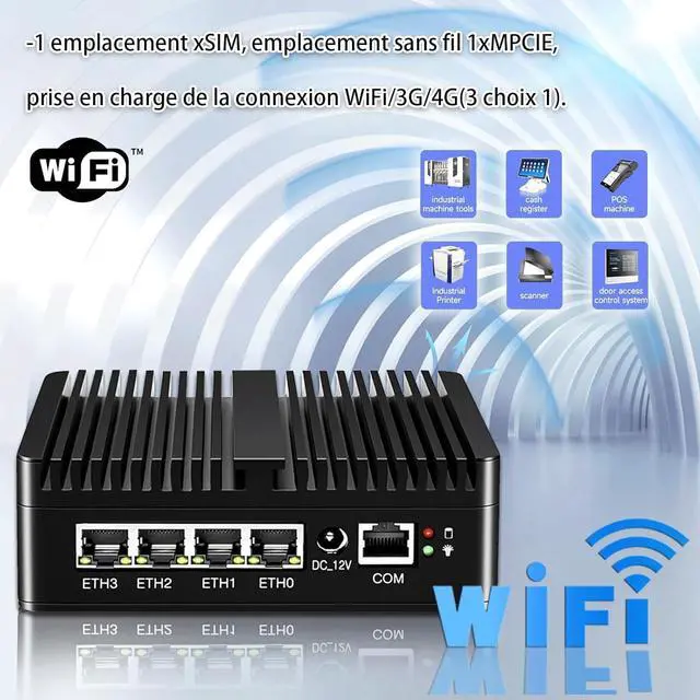 I/O Interface: 4 x i226-V 2.5G RJ45 LANs, 2 x USB3.0, 2 x USB2.0, 1 x RJ45 COM console, 1 x 4G/3G SIM slot