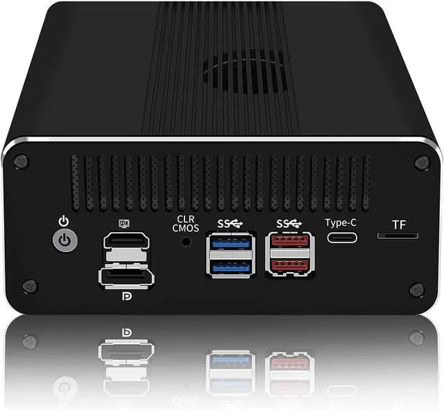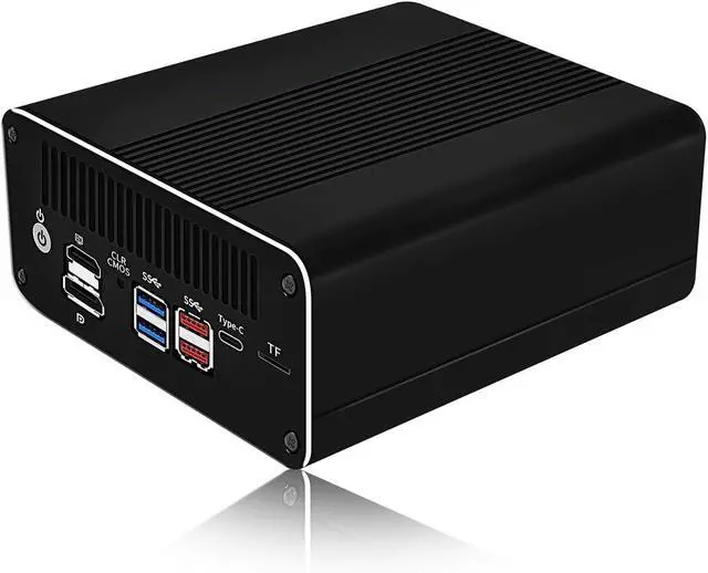 • RJ49 designed with power on/off, hdmi1.4, dp1.4a, clr cmos, 2 x usb3.0, 2 x usb3.2 for gen2x1 10gb/s, type-c for data/ display 4096 x 2304 60hz, tf for data storage/ system boot, 6 x lan, dc_in, 145.4 x 131.7 x 60.0mm, 1.5kgs