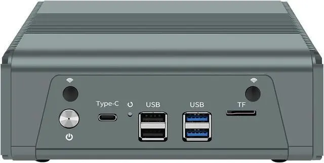 • RJ11 designed with power on/off, type-c support data, display, reverse charging, clr cmos, 2 x usb3.1, 2 x usb2.0, tf support storage or system disk boot, hdmi, dp, 4 x lan, dc_in, size at 168 x 132 x 60mm, 1.05kgs