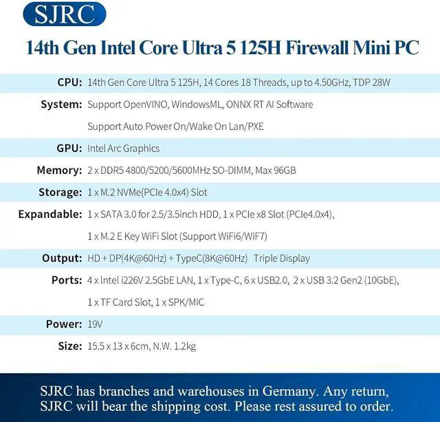 Networking: 4 x In-tel i226V 2.5GbE LAN .