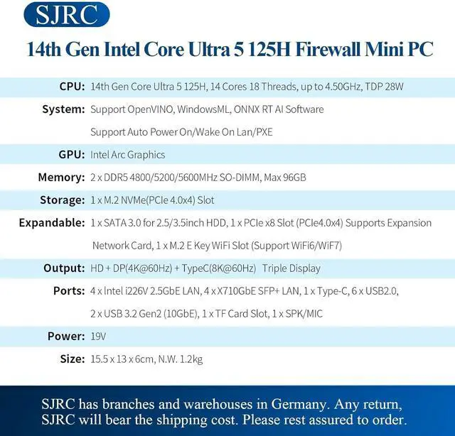 Memory: 2x DDR5 SODIMM (96GB Max). Note: It will take 5-10 minutes for the device to detect the RAM for the first time. Please be patient.
