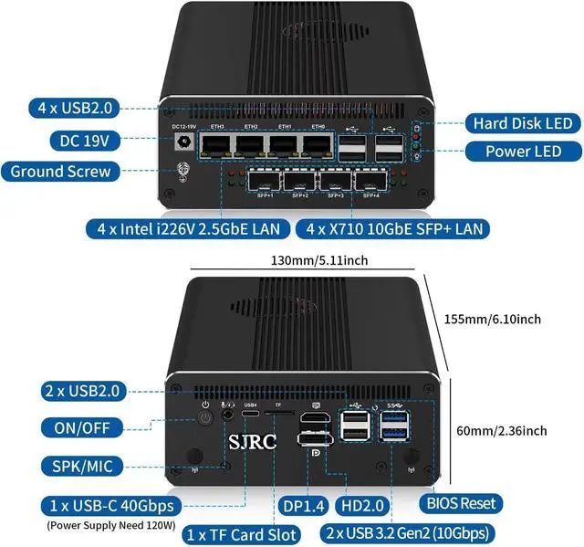 Networking: 4 x In-tel 2.5GbE LAN + 4 x X710 10Gb, SFP+ .