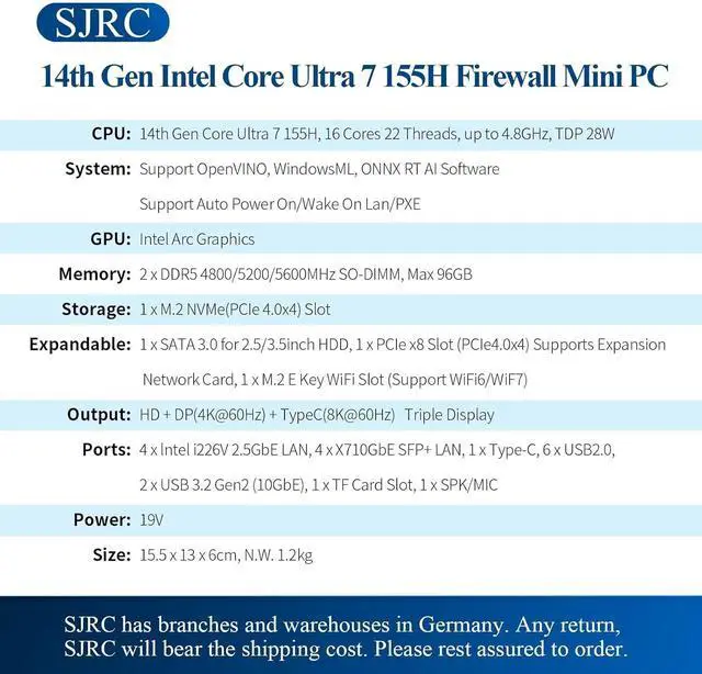Memory: 2x DDR5 SODIMM (96GB Max). Note: It will take 5-10 minutes for the device to detect the RAM for the first time. Please be patient.