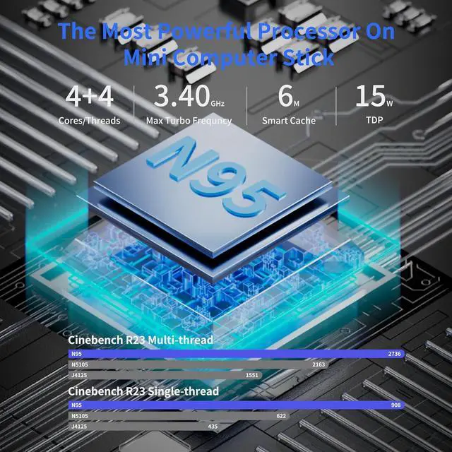 22026 Newest CPU N95Dreamquest Q5 Micro PC Equipped with the Next-Generation CPU 12th Alder Lake N95 (1.7GHz, Max to 3.4GHz) processor, compared to other versions (N100/N5105/N5100/N5095), Dreamquest Plus MIini PC N95 CPU performance +35%, GPU +78%, delivering better performance and efficiency. IntelUHD Graphics 1.20 GHz handles like browsing internet, reading email, editing documents, home office, and more with ease.