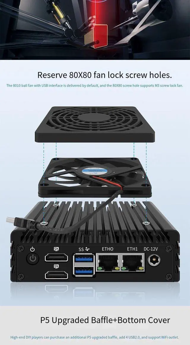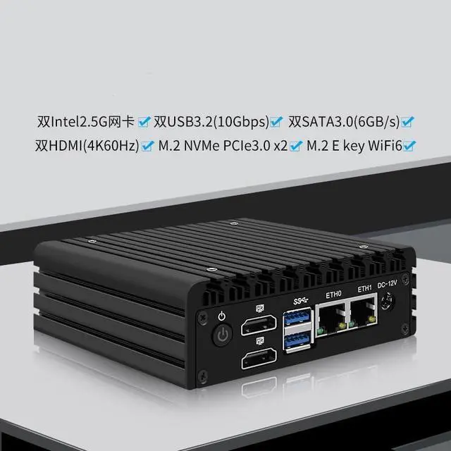 Rich interfaces: 2 x2.5G LANs,2 xUSB3.2, 2*HDMI2.1,Free gift of 1 * USB-8010 fan and 1 * SATA cable supports data storage and system boot.