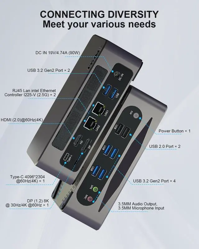Our mini computer has excellent storage performance, whether you are enjoying home entertainment or processing work, you can do whatever you want. It is an ideal choice for visual home entertainment, home office, conference room, etc.