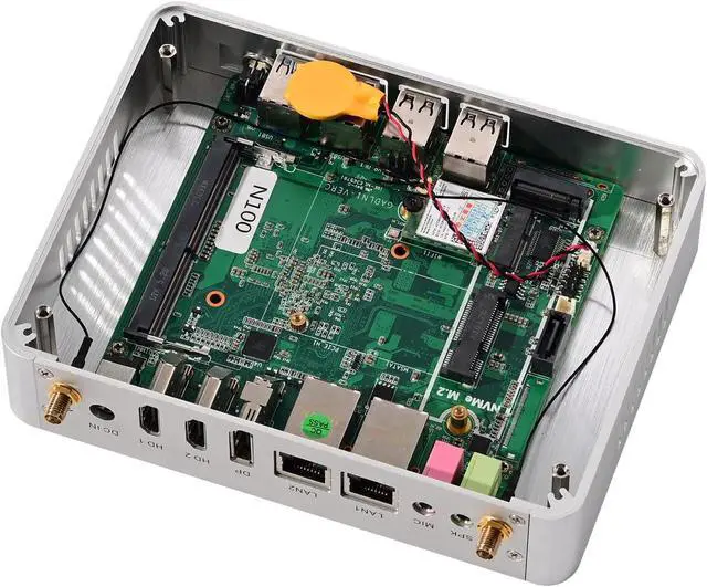 Packing List:HUNSN BM34 mini pc, power supply, power cord, vertical stand, WiFi antennas, warranty card