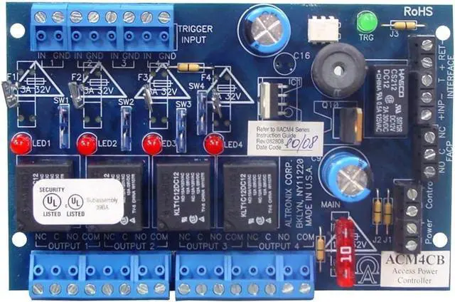 4 Output Access Power Controller Module - Converts One (1) 12 To 24 Volt Ac Or Dc Input Into Four (4) Ptc Power Outputs, Individually Selectable Fail-Safe/Fail-Secure Outputs, Fire Alarm Disconnect Is Selectable By Output, Ul Listed Sub-Assembly.