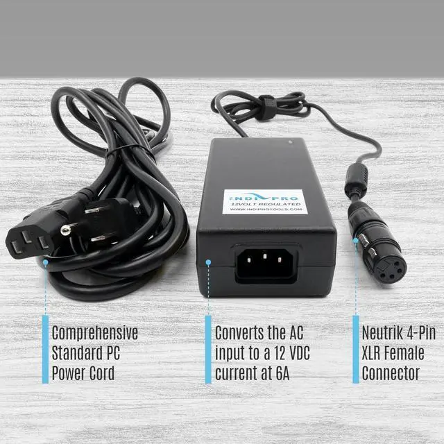 Next pageIndipro 12V, 10A AC Power Supply with 4-Pin Neutrix XLR Female Connector | Power Pro Cameras, Lights & Other Devices | Provide Continuous Power | Accepts 100 to 240 VAC Power | 8 in Length