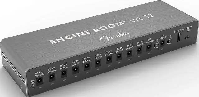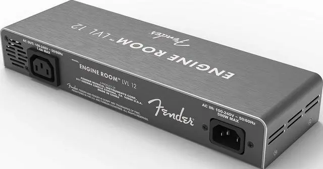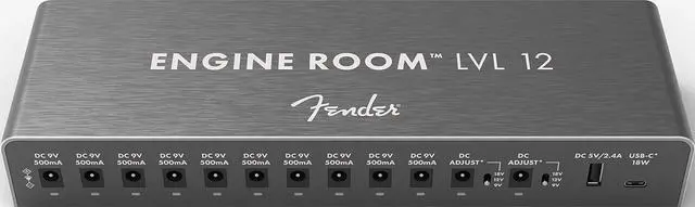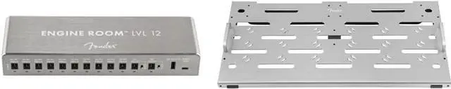 This pedalboard bundle pairs the Fender Engine Room LVL12 Power Supply with the Fender Professional Pedal Board with Case to provide a complete high-quality pedalboard solution. The Engine Room LVL12 Power Supply delivers versatile, isolated power for even the biggest pedal rigs. It features 12 total outlets - 10 provide 500mA of 9V DC power, while 2 additional outlets have switchable 9/12/18V operation. There's also a courtesy IEC outlet to connect more Engine Room power supplies if needed. The lightweight but durable aluminum chassis measures 11.1 inches long by 3.54 inches wide by 1.65 inches high. Complementing the LVL12, the Professional Pedal Board's precision-machined aluminum chassis measures 24 x 16 x 2.95 inches and fits most popular power supplies. Its smart cable management system keeps connections organized. The included soft case and storage pocket provide portability and protection. Together, the Fender Engine Room LVL12 and Professional Pedal Board form a robust pedalboard platform ready to handle extensive effects rigs in both studio and stage settings.