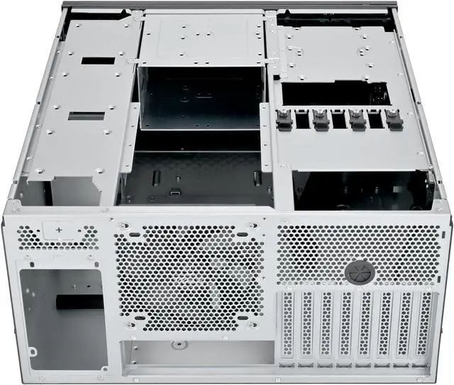 2. Universal hard drive cage design supports 5.25", 3.5" and 2.5" storage devices