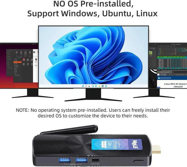 • Memory and Storage - This PCG02 compute stick equipped with 8GB LPDDR4, 128GB storage, and it's NO OS installed, it support Windows, ubuntu, Linux, you can choose the system you need. A Micro SD card slot can be added separately to expand the storage up to 1TB, with two USB-A 10Gbps ports and one USB-C 10Gbps ports, easily connecting to other devices, allow you to deal with multiple tasks and projects easily at the same time.