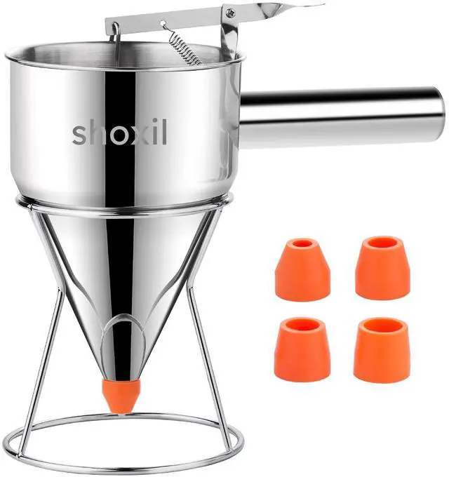 The high quality stainless steel spring helps you precisely control the funnel to dispense batter quickly and easily, and is durable and will not rust.