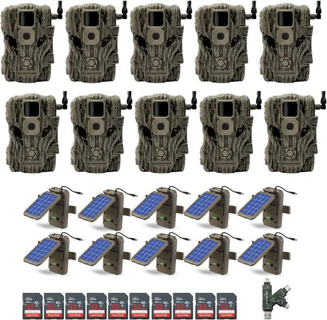 • Bundle Includes: 10 x Stealth Cam Fusion X 26MP Trail Camera (AT&T), 10 x Stealth Cam Lithium Solar Power Panel, 10 x 32GB Ultra SDHC UHS-I Memory Card and 4-in-1 Card Reader with Micro USB, USB-A, Lightning and USB-C Ports
