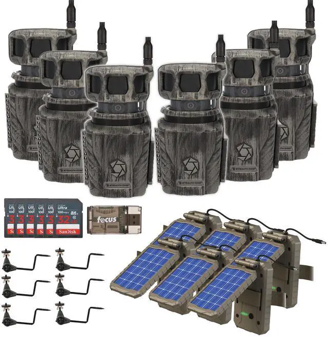 The all new Stealth Cam Revolver 36MP 360-Degree Cellular Trail Camera delivers the equivalent of six cameras worth of coverage in a single device capturing 4MP, 8MP, 16MP, and 36MP photos and 1080 HD video with audio via a revolutionary, 360-degree cellular model that covers six zones to deliver a complete panorama of its surroundings. This means users get a full 360 degrees of visibility, day and night, to ensure they never miss a thing even deer passing behind where the lens is positioned. Plus, thanks to its silent, pivoting motor, you can get more than just one photo from a single vantage when a zone is triggered. The camera responds quickly to deliver high-quality images and videos in real time, making it ideal for use on food plots. Choose from three photo operation settings, including: single-zone capture, 180-zone capture and 360-zone capture. Four power LEDs boast a whopping 80-foot detection range which, when paired with the 0.4-second trigger speed, burst mode and timelapse capabilities, provide reliable updates in real time, 24 x 7. Thanks to the integrated GPS, the camera shares its coordinates with you. Powered by a 16pc dual cartridge battery, it features a 1/4-inch threaded mount, 12V DC auxiliary jack and optional t-post mounting bracket (included). Includes Command Pro app compatibility. Capture every angle with the Revolvers 360-degree mode, designed to provide comprehensive visibility in food plots and large open areas.