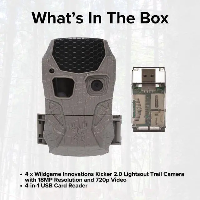 Wildgame Innovations Kicker 2.0 Lightsout Trail Camera with 18MP Resolution and 720p Video Capture