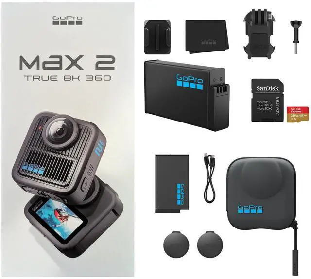 GoPro takes 360° content creation to the next level with the GoPro MAX2 360 Action Camera Bundle Kit, designed for filmmakers, adventurers, and creators who demand premium performance, versatility, and clarity. This all-in-one kit combines the cutting-edge GoPro MAX2 360 camera with essential accessories for seamless shooting, extended storage, and ultimate protection.