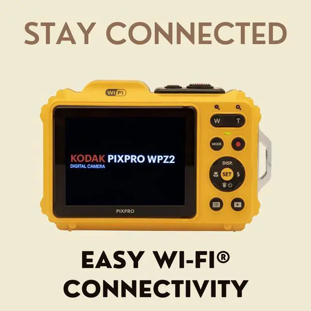 Easy Wi-Fi ConnectivityDont let anyone miss out on the action! The Kodak PIXPRO WPZ2 rugged camera can easily connect wirelessly to your smart device so you can upload and share your best shots with friends, family and the world while on the go.