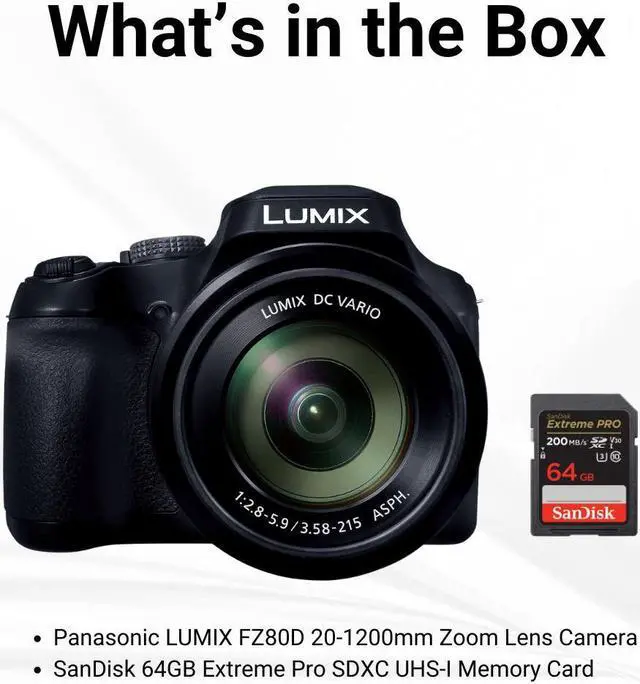 Panasonic LUMIX FZ80D 20-1200mm Zoom Lens Point and Shoot Compact Camera (Black)