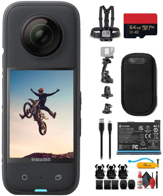 1 x Insta360 X3 - Waterproof 360 Action Camera with 1/2" 48MP Sensors, 5.7K 360 Video, 72MP 360 Photo, Stabilization, 2.29" Touchscreen, AI Editing, Live Stream