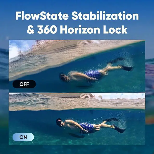 goodbye to: shaky footage. With FlowState Stabilization technology, your footage will always look butterry smooth. Lock the horizon for to capture underwater flips without dizzying your audience.