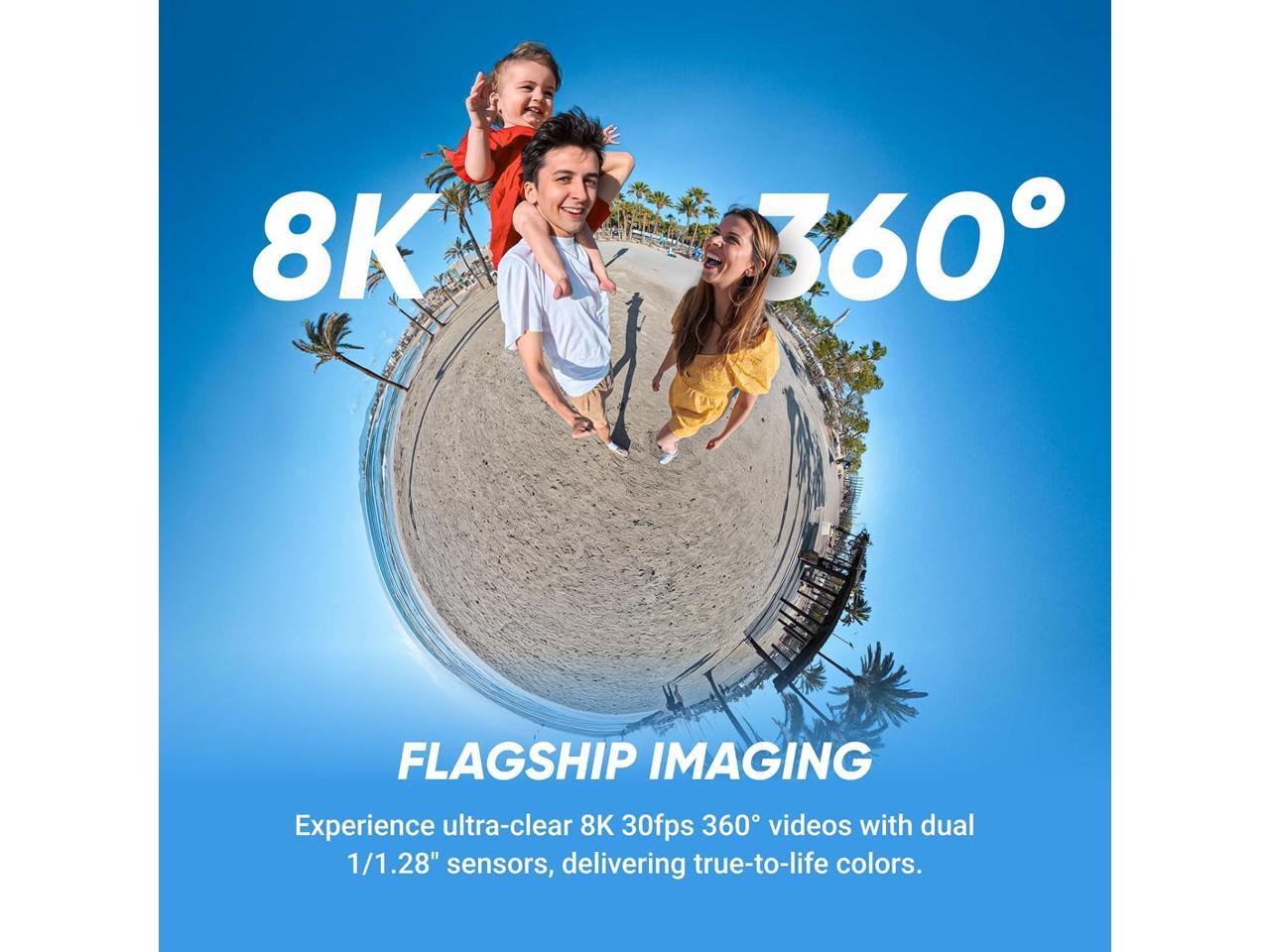 - 8K30fps 360° Video with Dual 1/1.28" Sensors: Larger 1/1.28" sensors capture more light for brighter, richer visuals and mind-blowing 8K30fps 360º video.