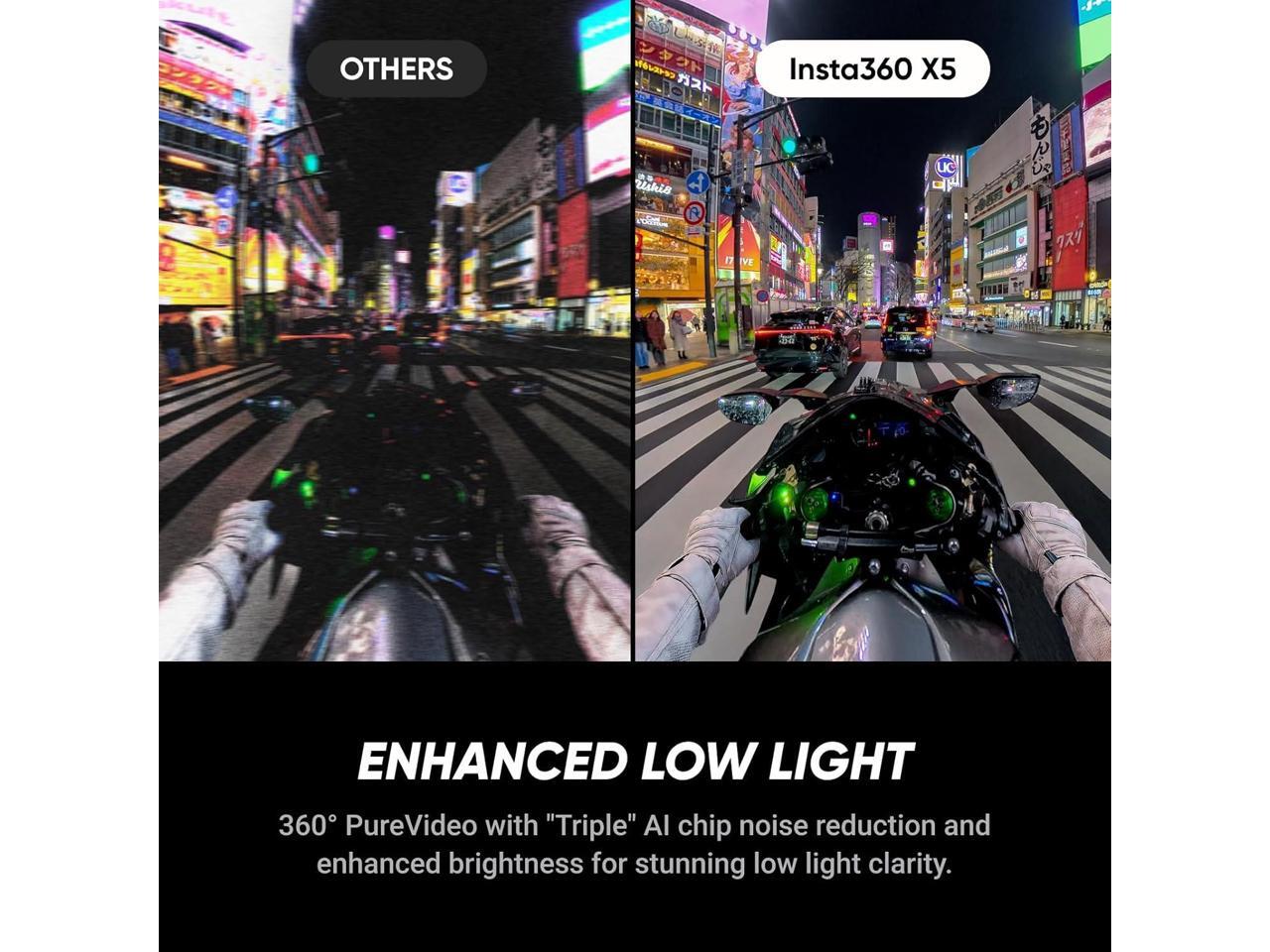- Triple AI Chip for Superior Low Light: Insta360's first triple AI chip, combined with PureVideo, takes low-light shooting to the next level.