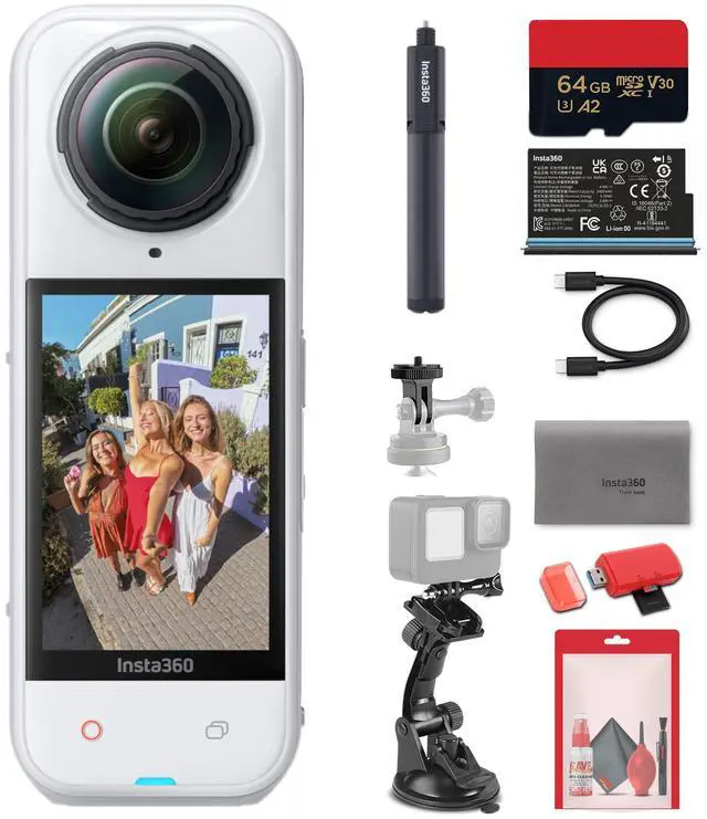 The Insta360 X5 8K 360° Waterproof Action Camera (White) is a versatile tool designed for creators seeking high-quality, immersive content. Its dual 1/ 1.28" sensors and Triple AI Chip system deliver stunning visuals with exceptional low-light performance. The camera's user-replaceable lenses and rugged, waterproof design ensure durability in various environments. Features like InstaFrame Mode and extended battery life enhance usability, allowing for efficient content creation and sharing. Whether you're capturing action-packed adventures or professional-grade footage, the X5 offers the tools necessary to bring your vision to life.