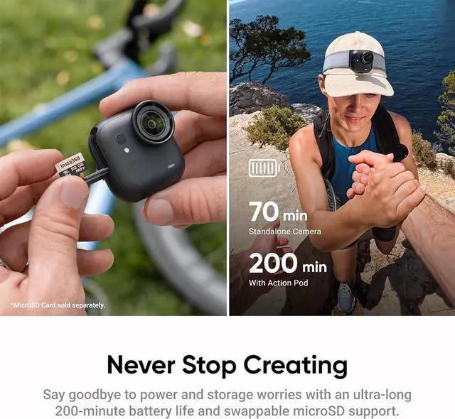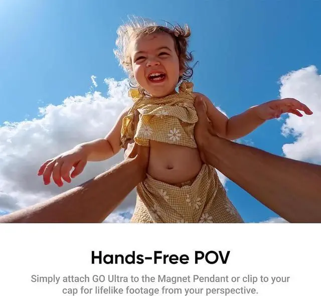 A palm-sized 4K powerhouse.GO Ultra offers complete artistic freedom with its compact 53g body. Take it wherever you go, mount it wherever you like, and get shots no other cam can get.True Hands-Free POV