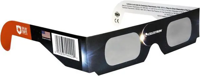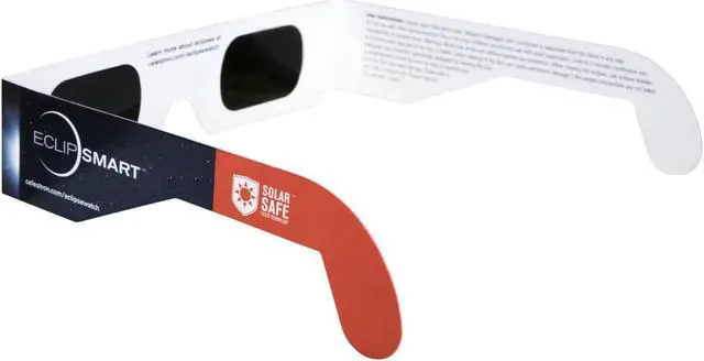The Celestron EclipSmart Premium Solar Safe Filter Technology Eclipse Glasses, ISO 12312-2:2015 (E) Standard are a must-have accessory for anyone who wants to safely observe solar events like eclipses. Each pair of CelestronKEY_TAB EclipSmart glasses utilize Solar Safe technology to provide a safe and comfortable viewing experience.KEY_TAB Economical and easy to use,KEY_TAB all Celestron EclipSmart Solar shades are 100% ISO certified.